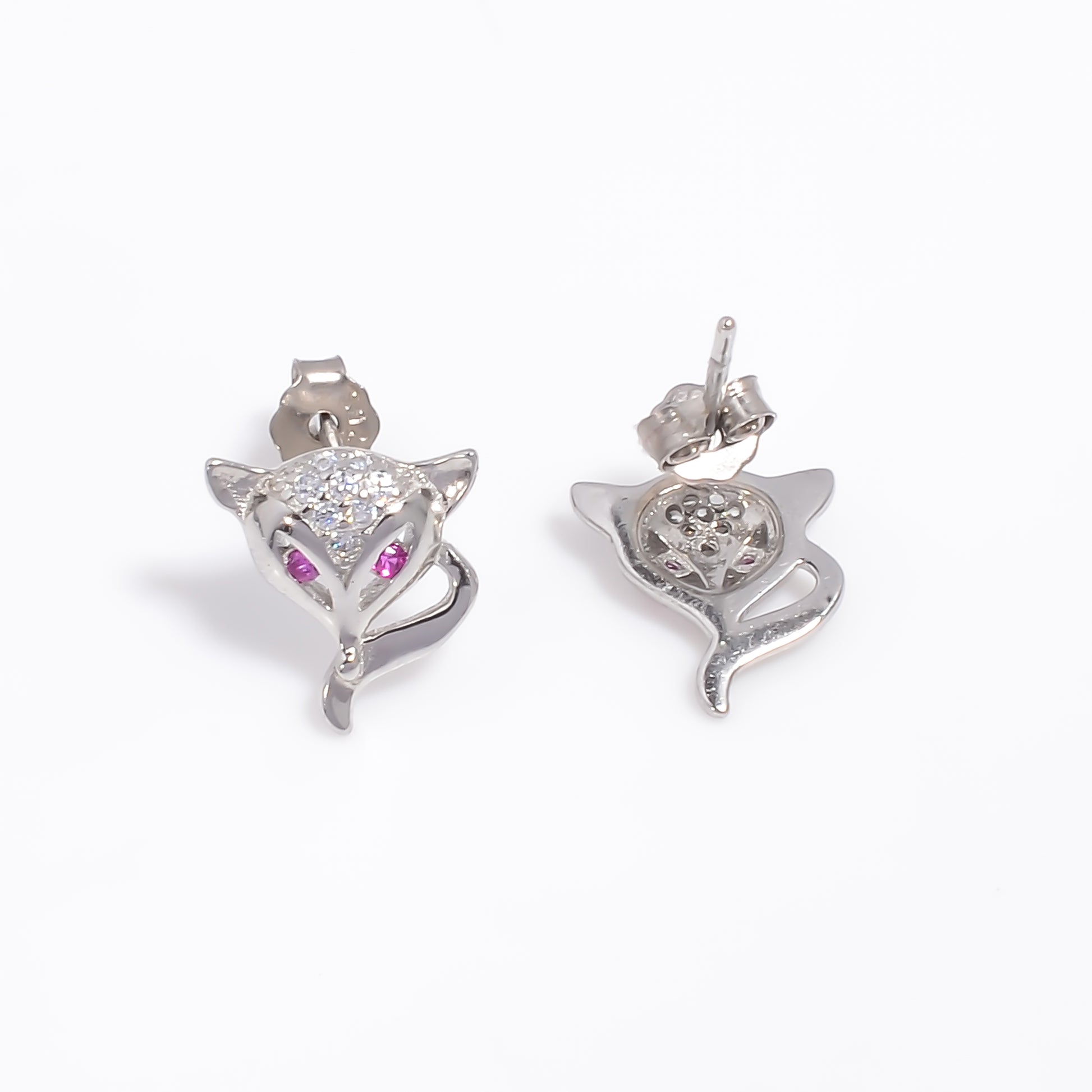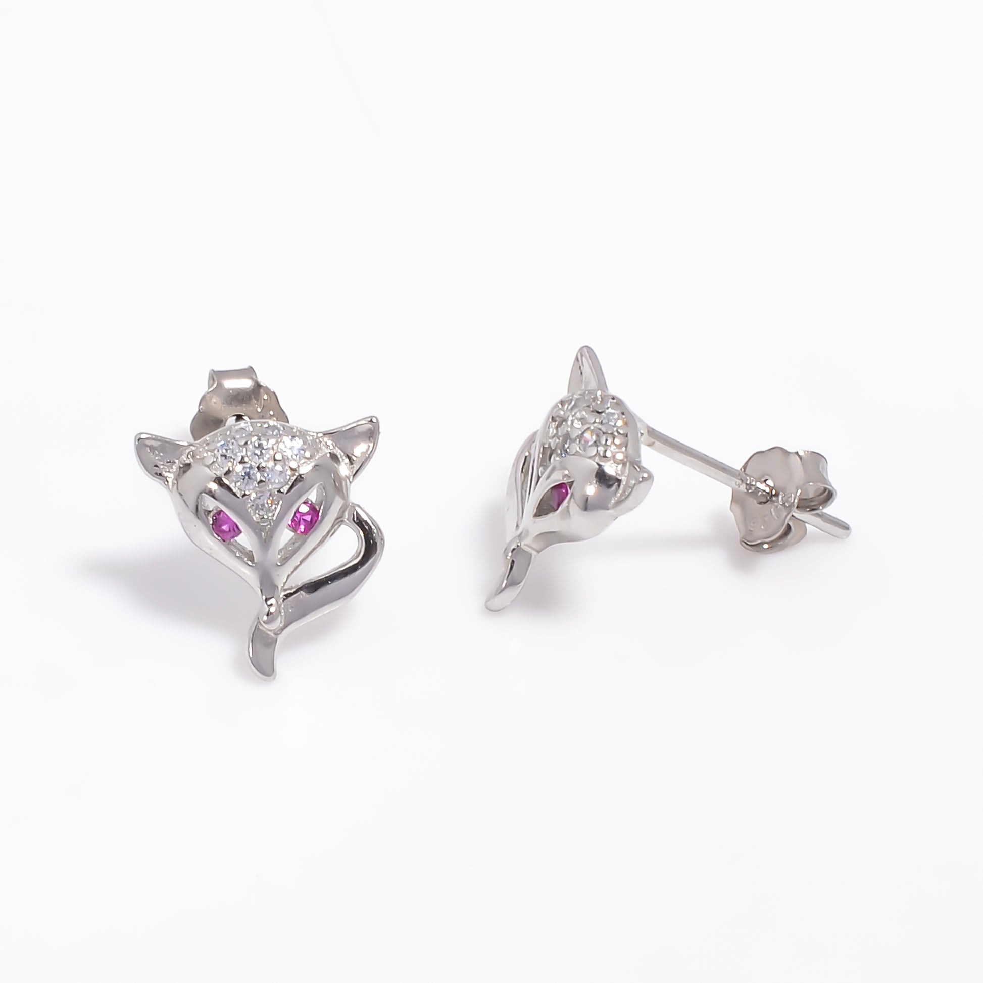 Silver Animal Stud Earrings with Pink Dot Eyes
