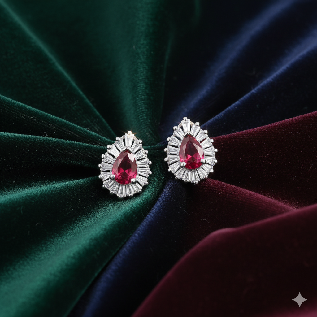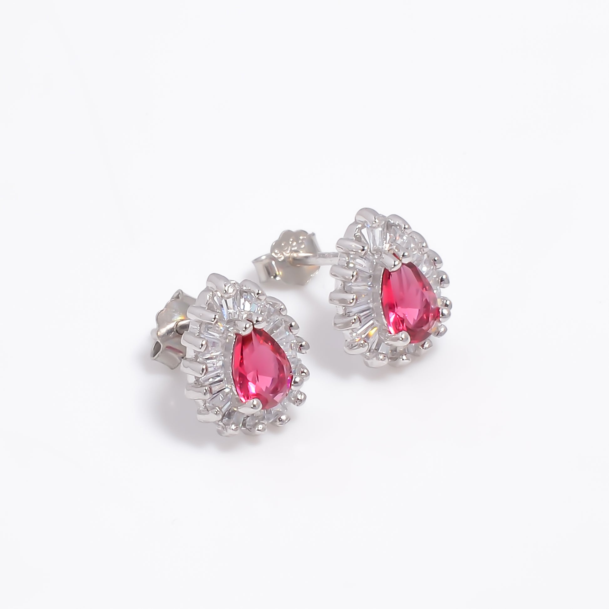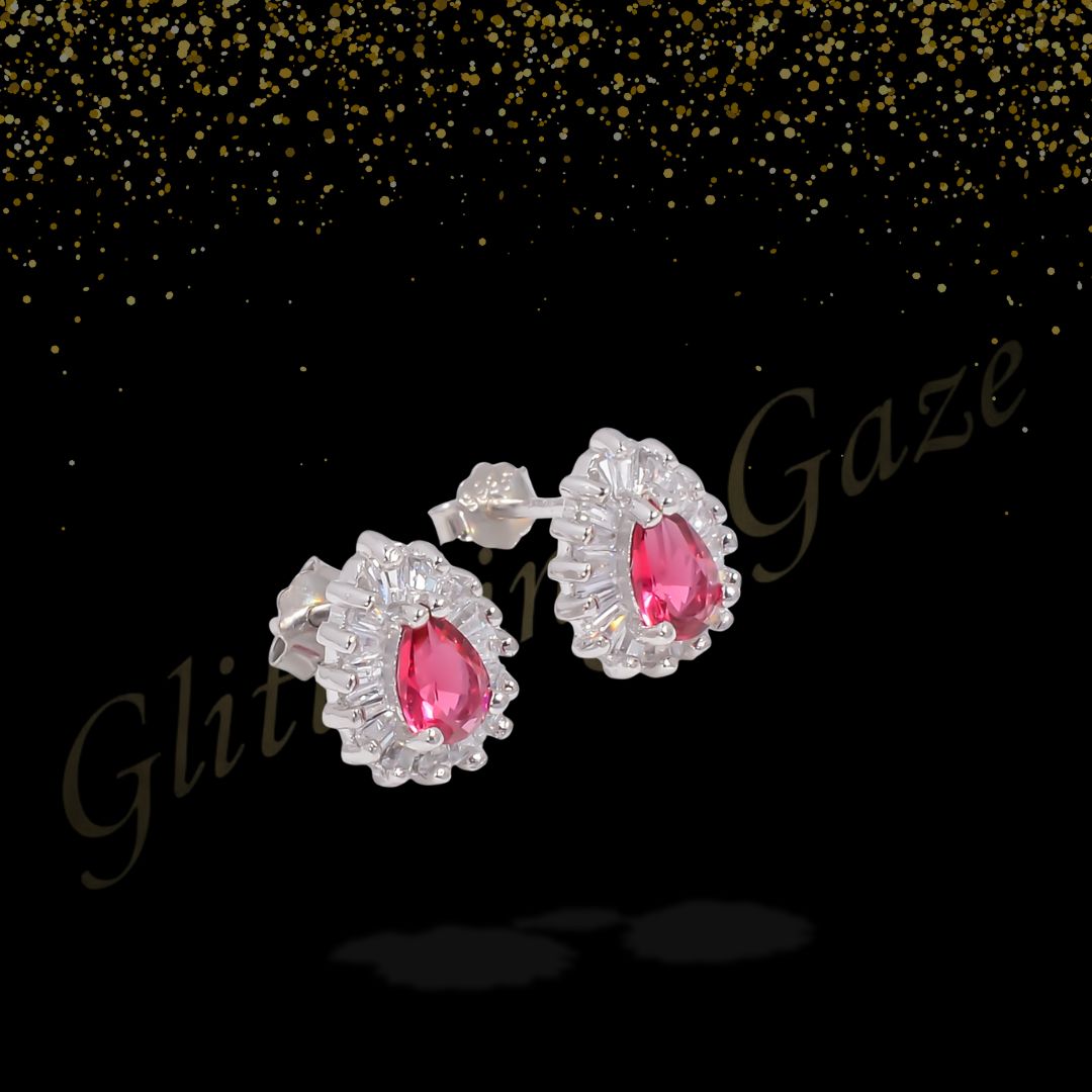 Bring a soft pop of color to your look with these elegant earrings featuring a radiant red stone at the center. The delicate design blends timeless charm with modern style, making them perfect for both everyday wear and special occasions.