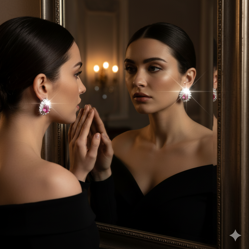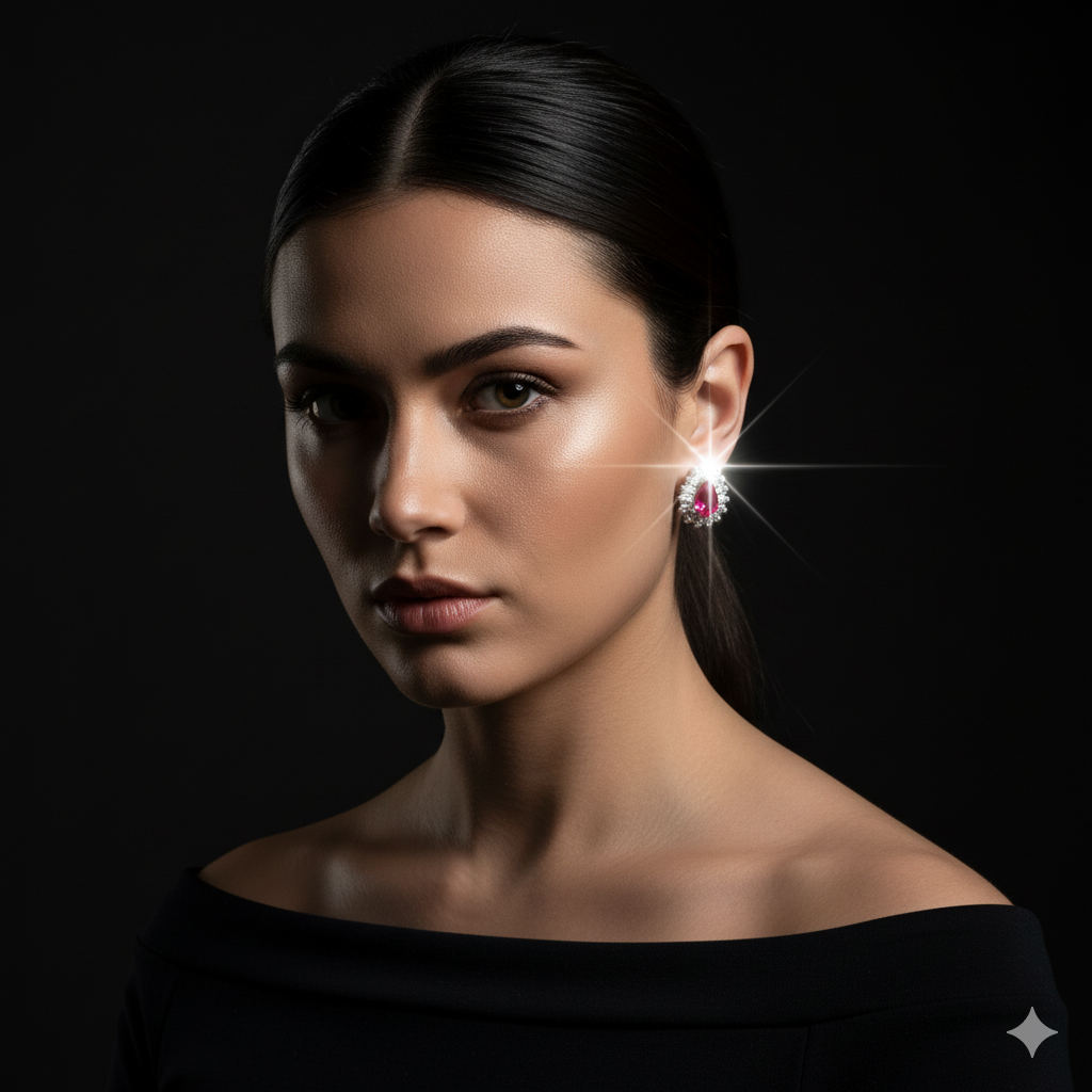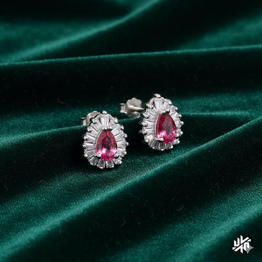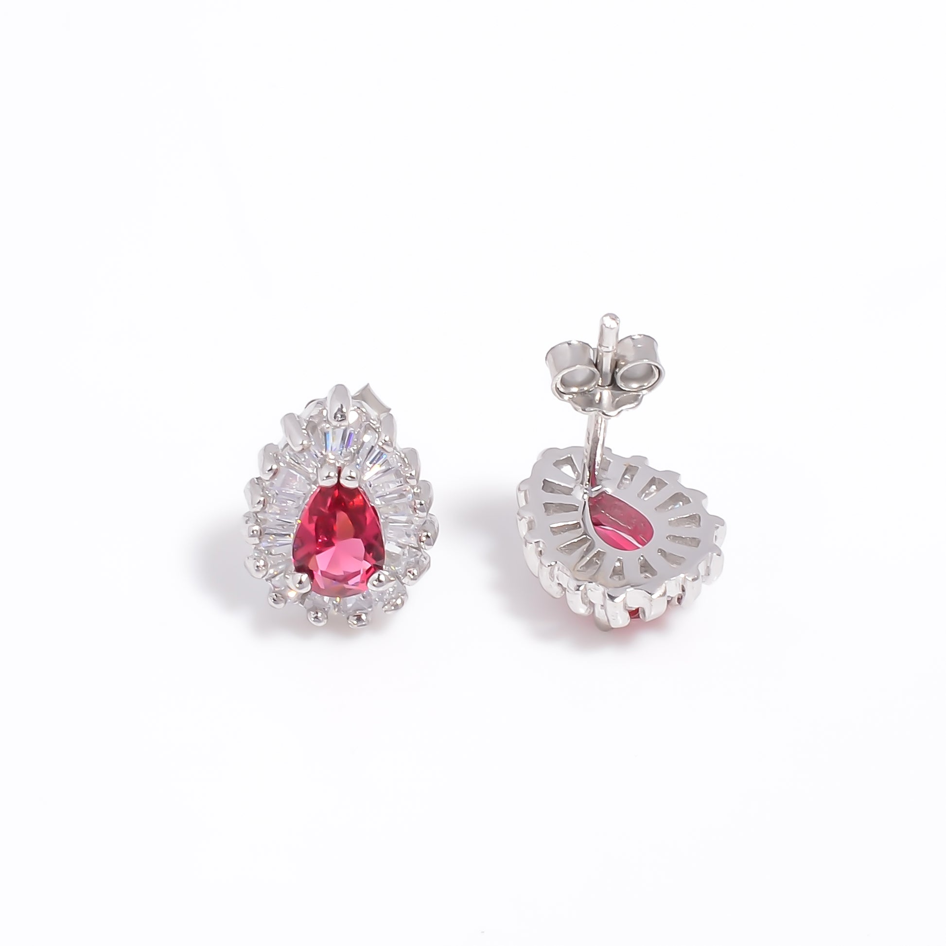 Bring a soft pop of color to your look with these elegant earrings featuring a radiant red stone at the center. The delicate design blends timeless charm with modern style, making them perfect for both everyday wear and special occasions.