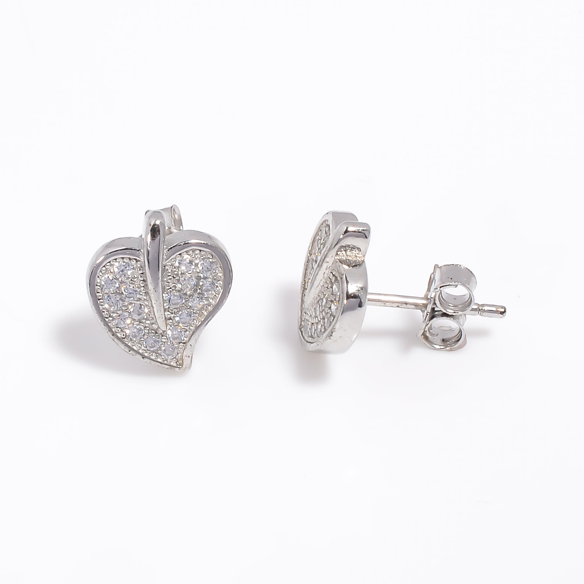 Silver Heart Stud Earrings with Sparkling Stones