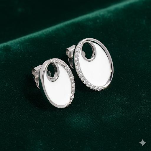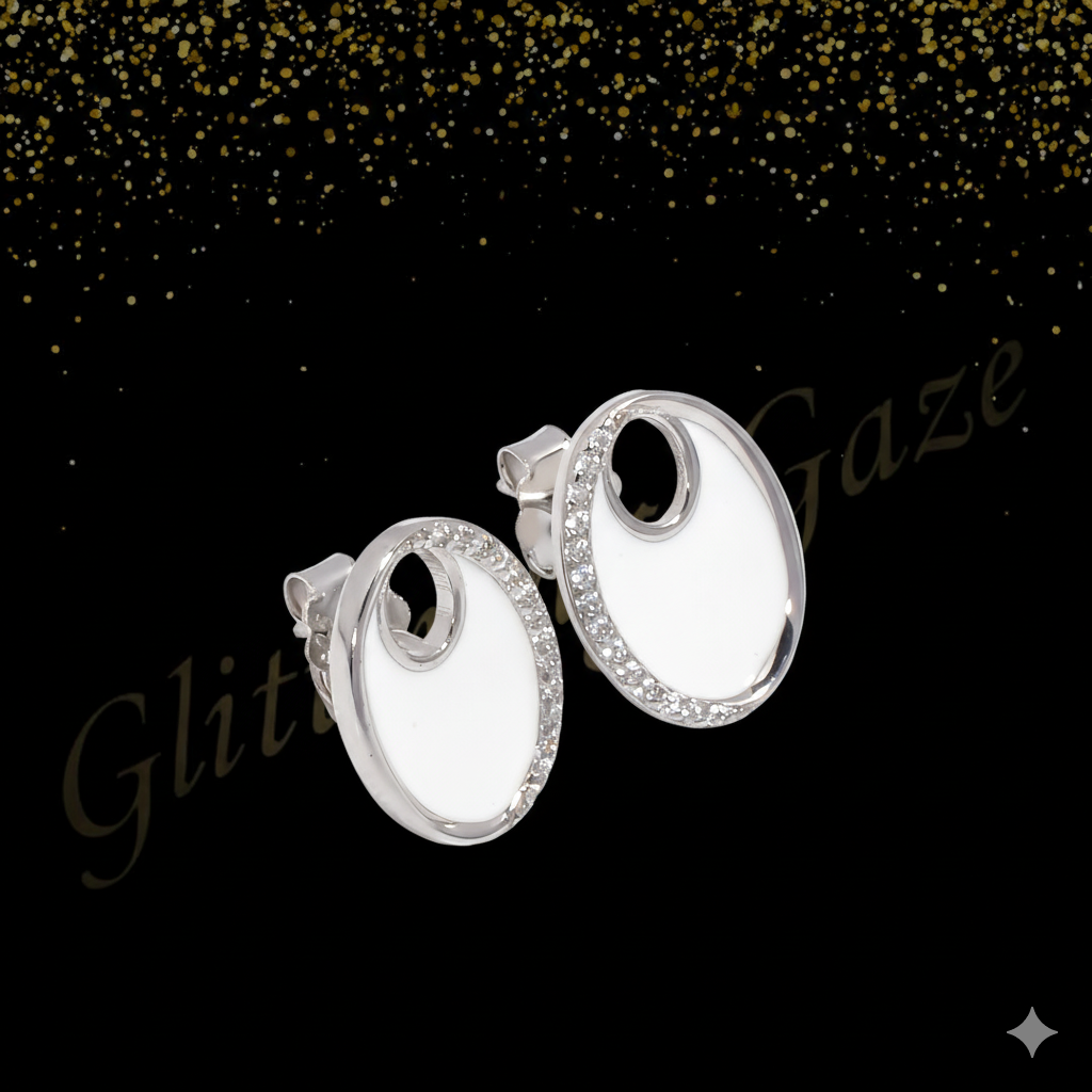 Turn heads with these exquisite high-finish silver stud earrings, designed to bring a perfect balance of sparkle and sophistication. The fan-shaped design is adorned with shimmering stones that reflect light beautifully, making them an elegant choice for both everyday wear and festive occasions. Weighing 2.600 grams, they offer a slightly bolder presence while remaining lightweight and comfortable. The butterfly push-back closure ensures a snug and secure fit all day long.