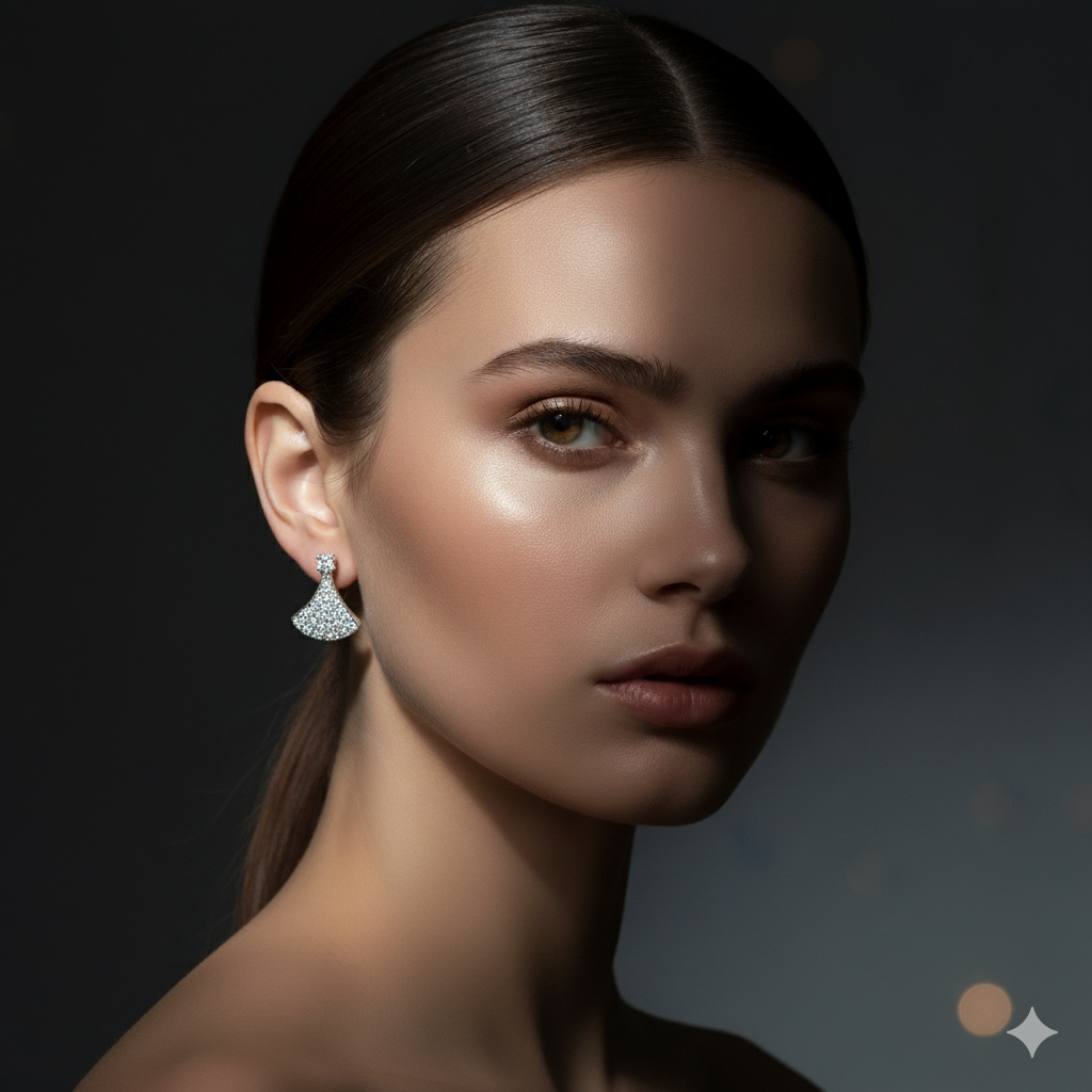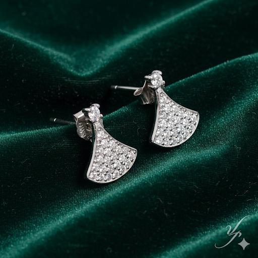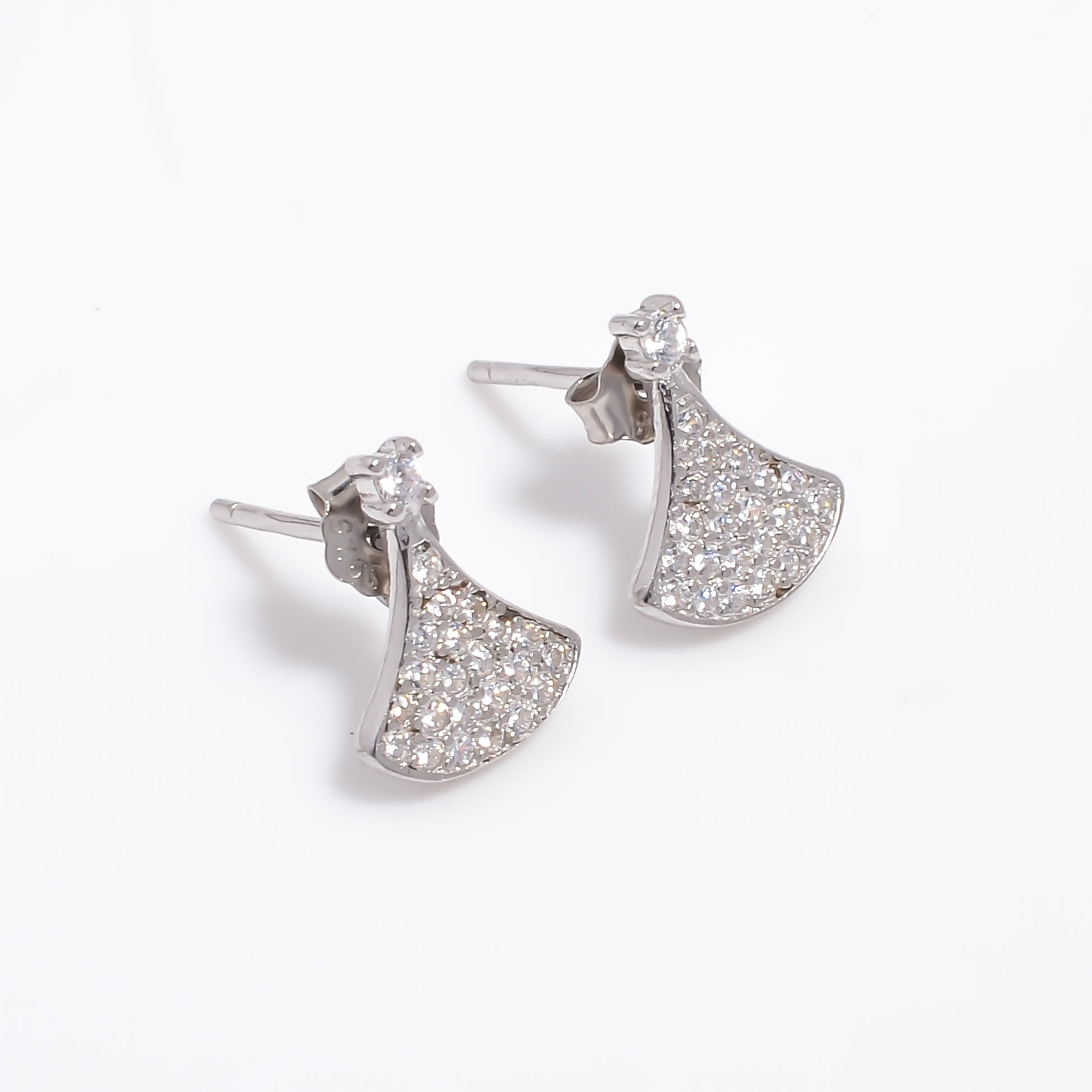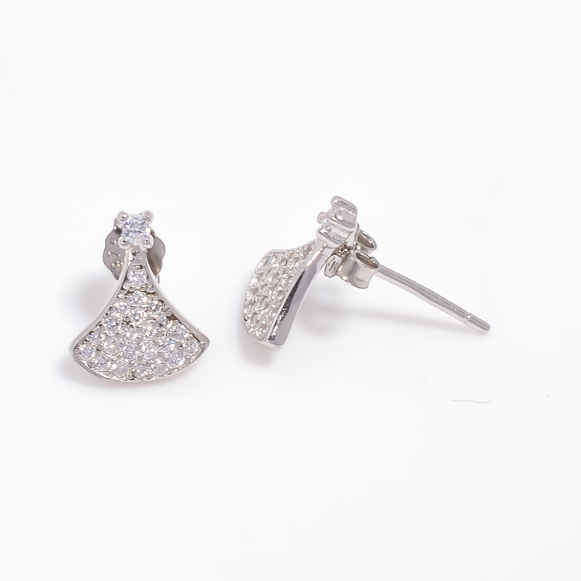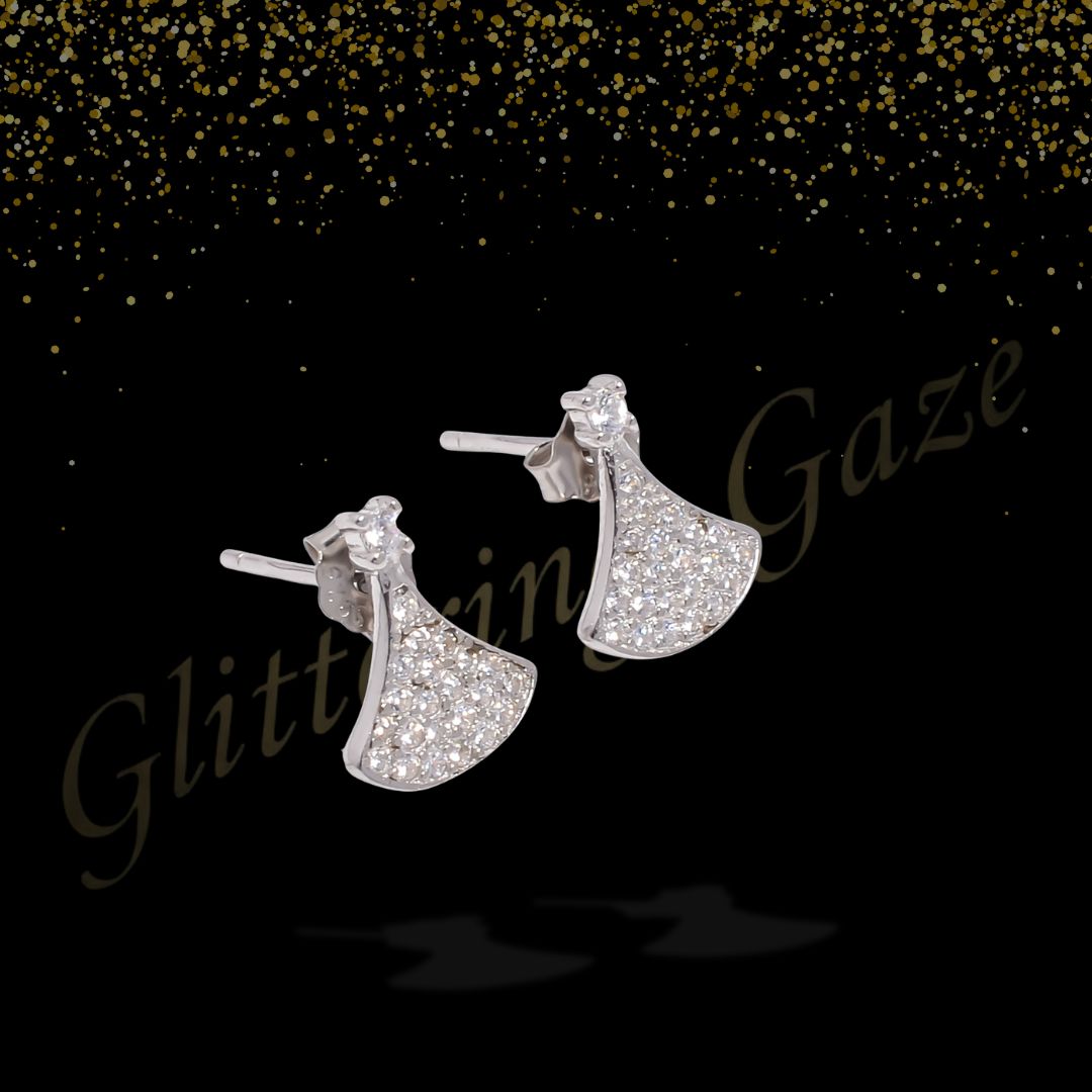 Add a touch of elegance to your everyday style with these high-finish silver stud earrings. Crafted with precision, each earring features a graceful fan-shaped design embellished with dazzling stones that capture the light beautifully. Lightweight at just 0.900 grams, they ensure comfort for all-day wear. The secure butterfly push-back closure makes them perfect for both casual outings and special occasions.