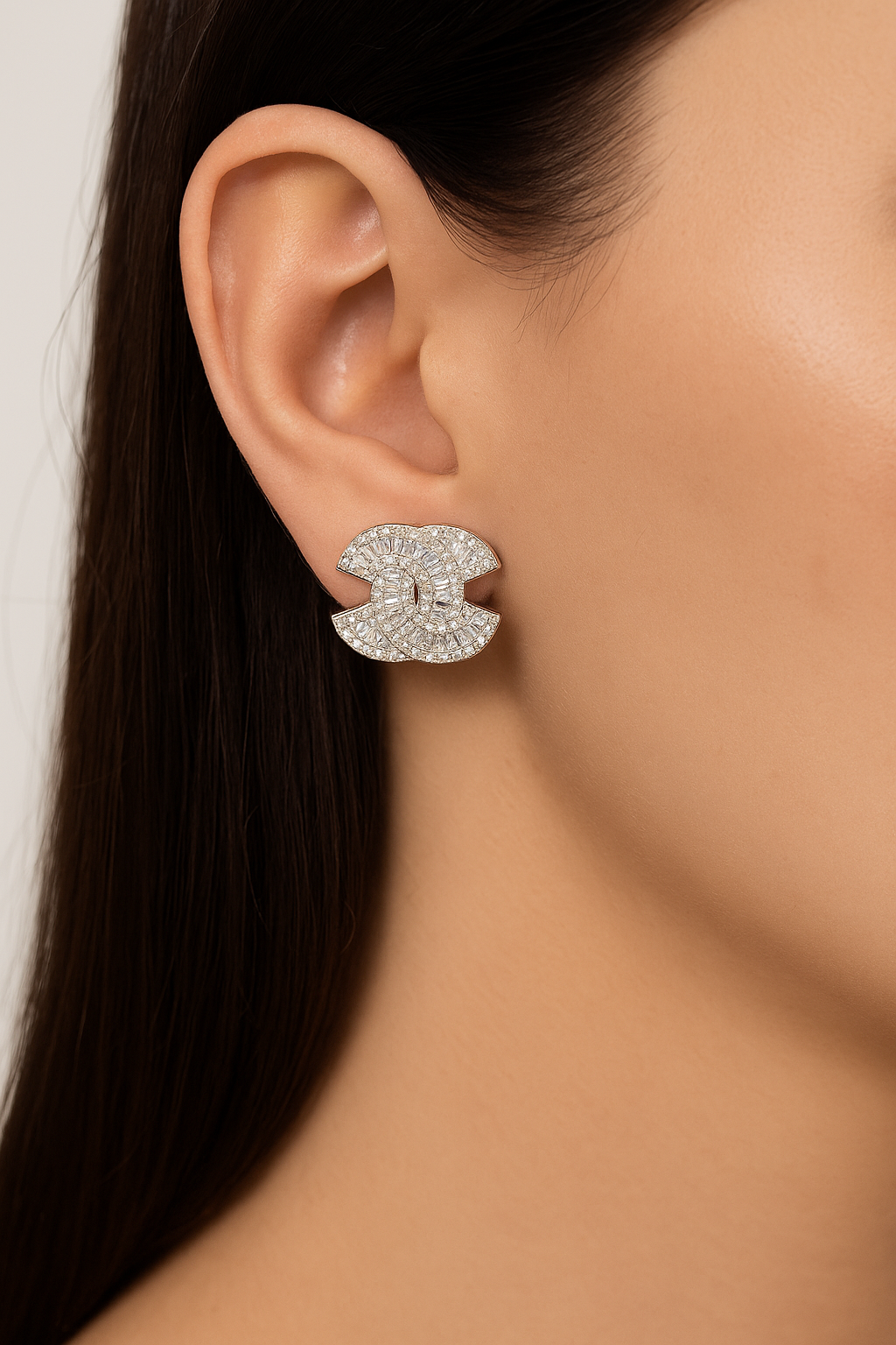 Midnight Glam – Silver Hoop Earrings with Black Stone & Crystals